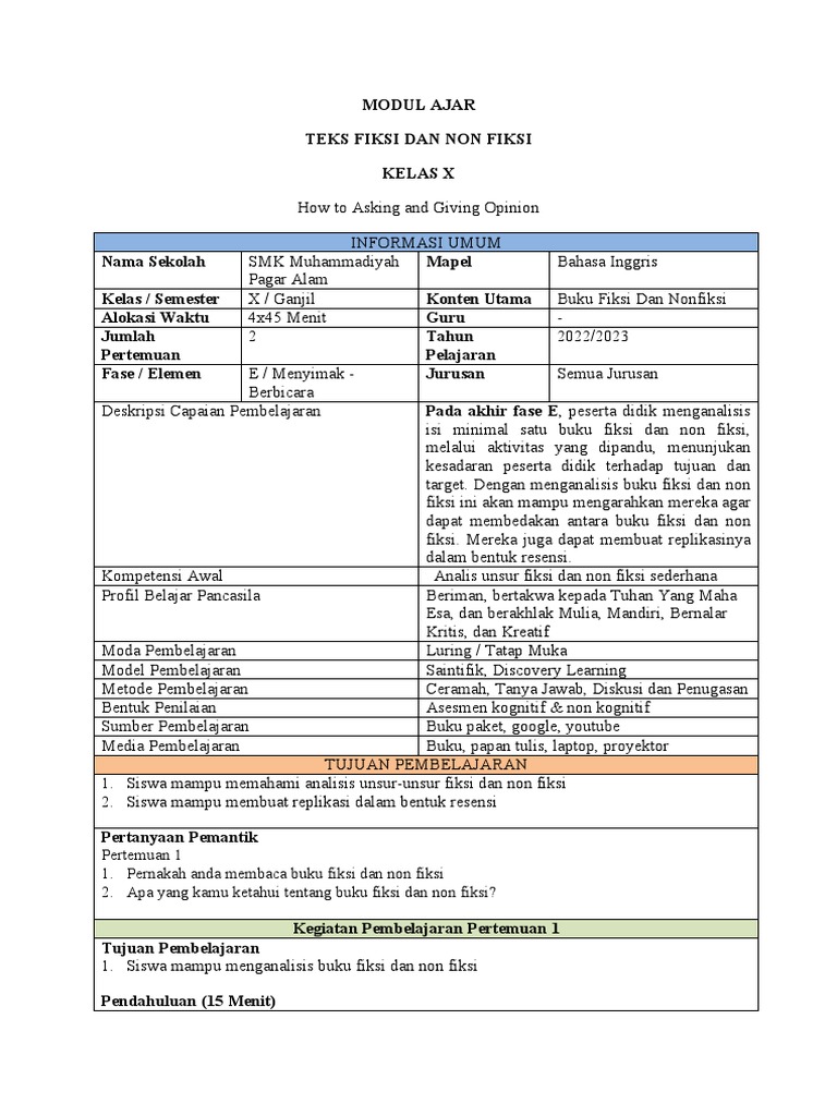 • Membedakan Fakta dan Opini: Meskipun teks nonfiksi berfokus pada fakta, terkadang ada unsur opini yang tersirat (terutama pada teks yang lebih analitis).